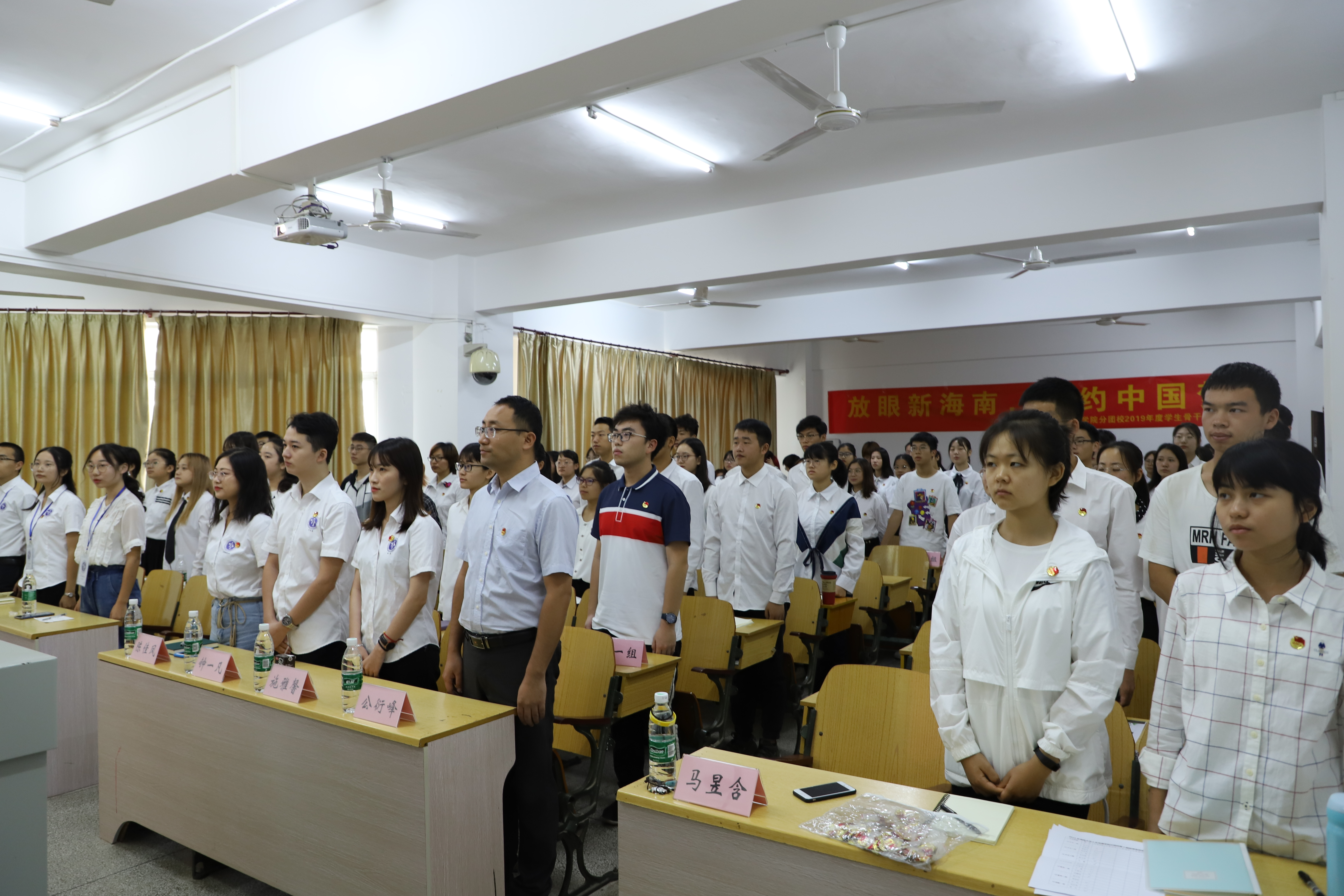 全体齐唱国歌、团歌