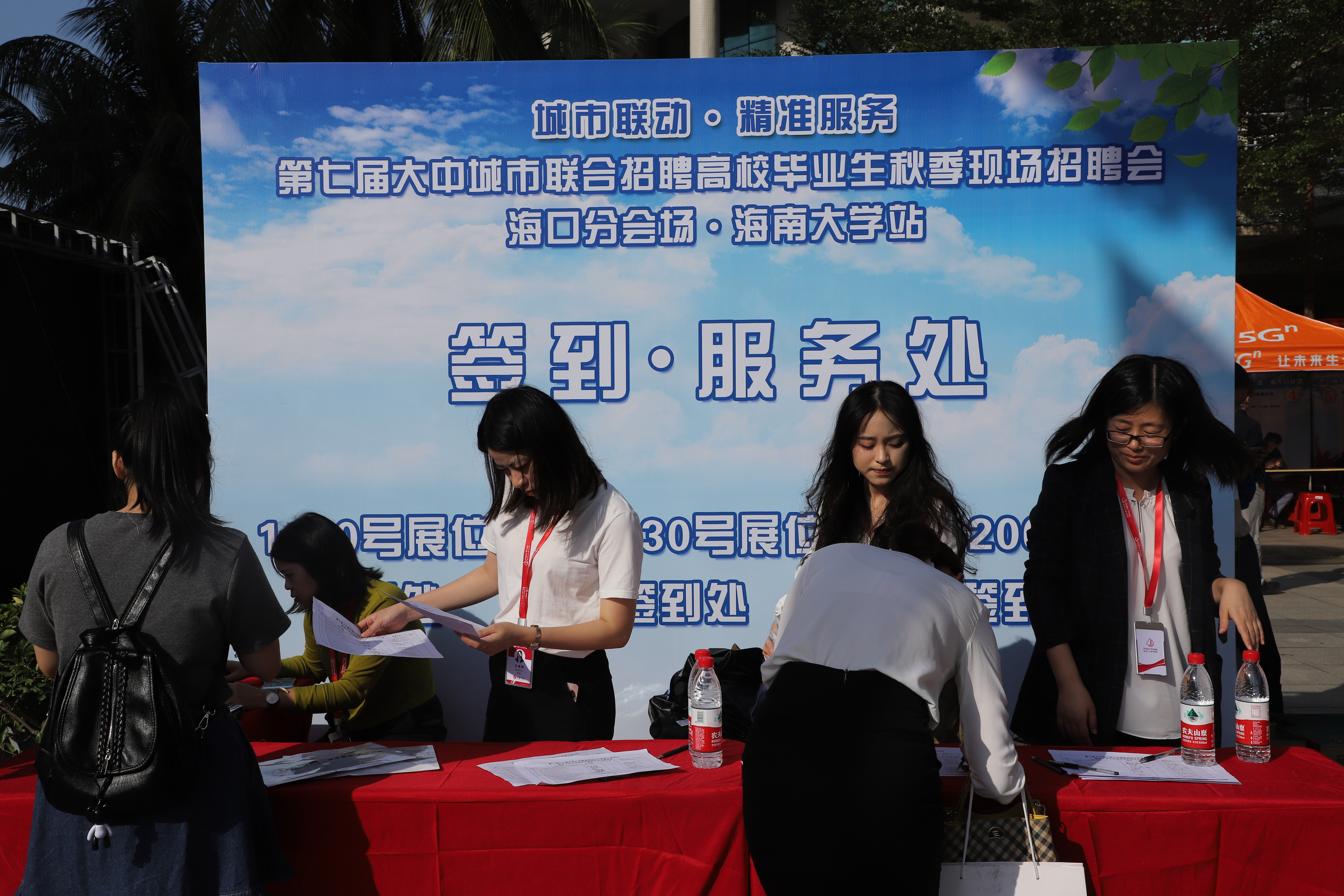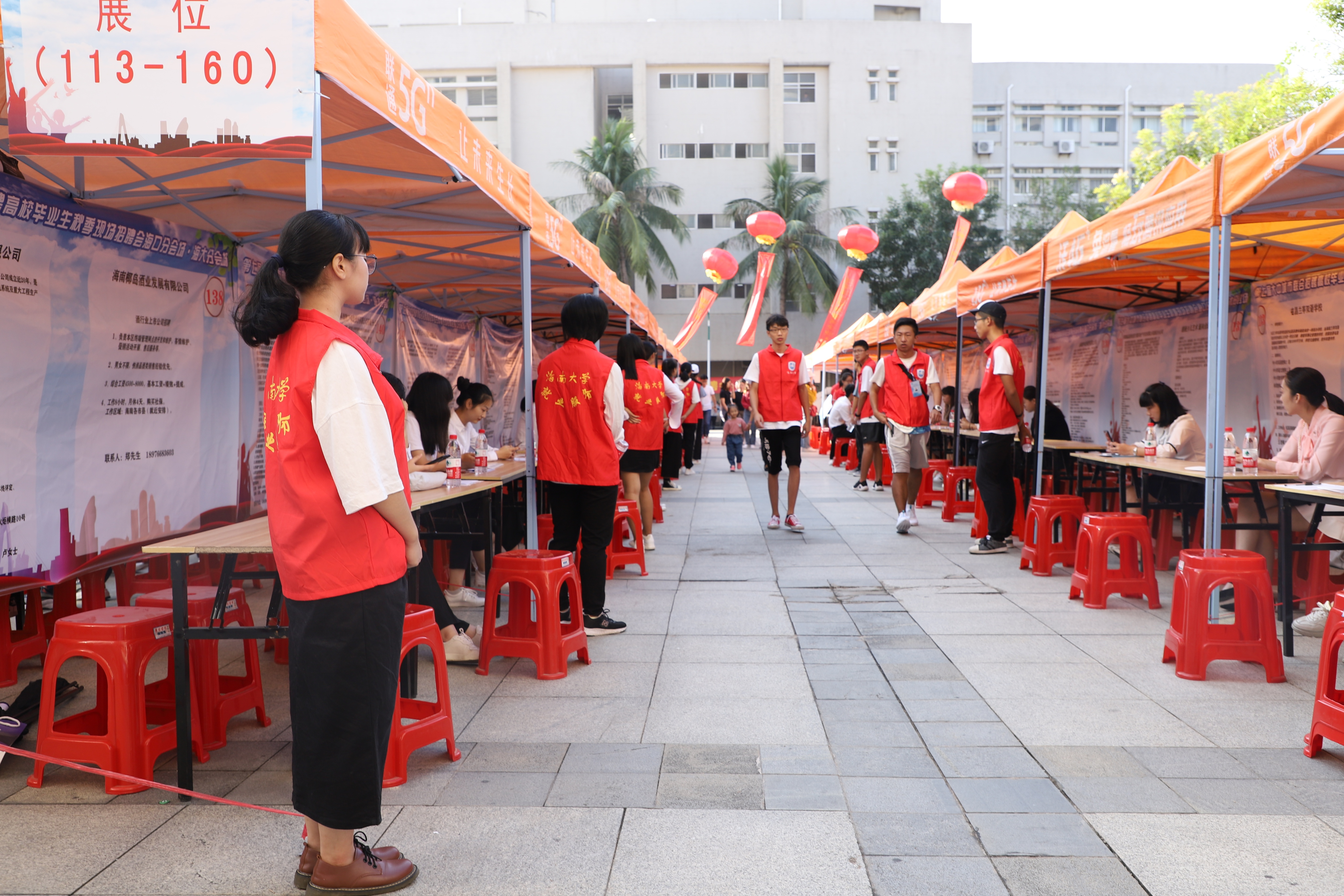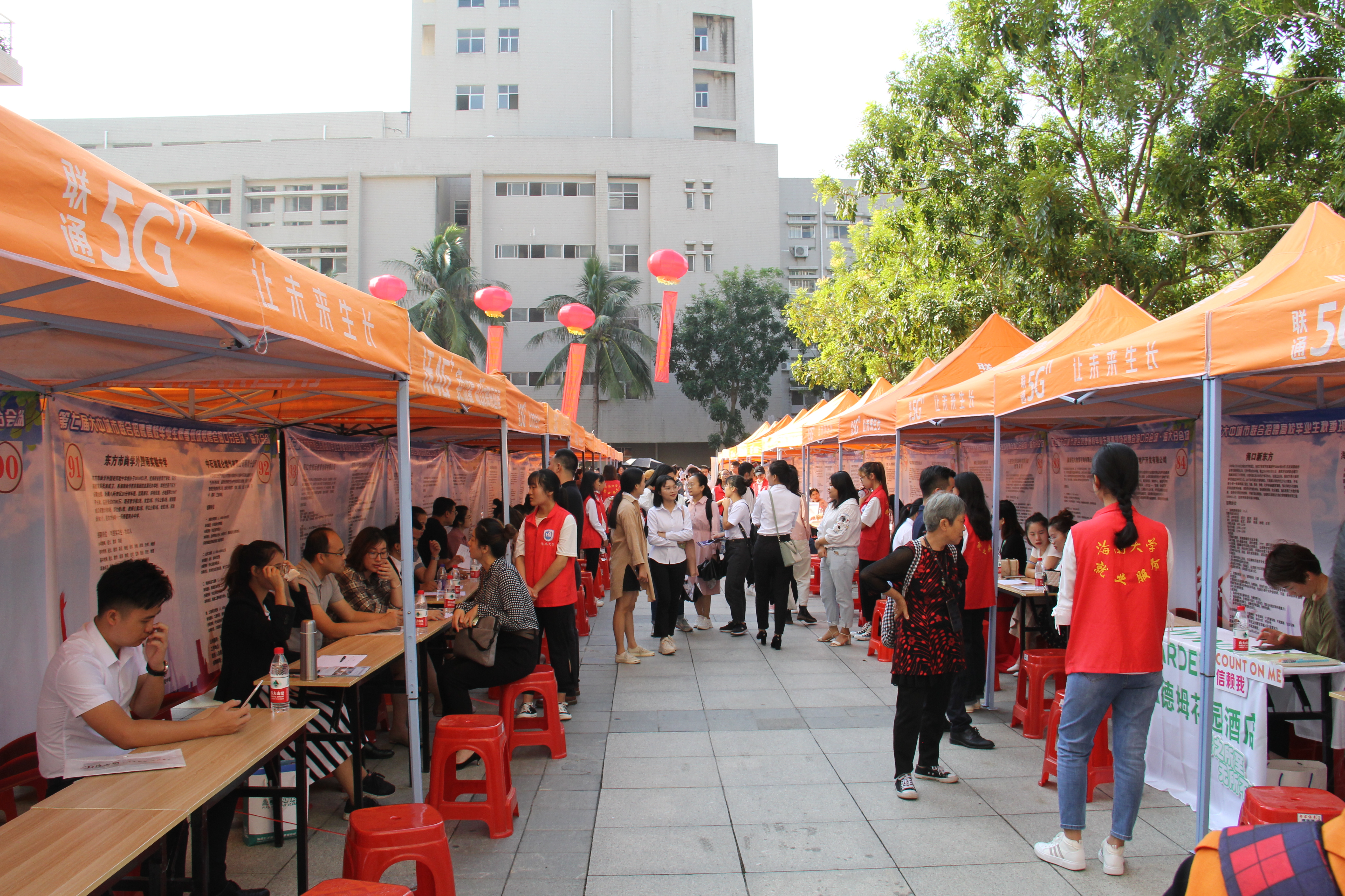 2019年11月16日上午,由海口市人才劳动力交流服务中心主办,海南天涯人力资源管理服务有限公司与bevictor1946韦德官网招生与就业处联合承办的第七届大中城市联合招聘高校毕业生秋季专场活动bevictor1946韦德官网分会场招聘会暨2020届文科类公司毕业生专场联合招聘会于bevictor1946韦德官网社科群楼广场隆重举行。bevictor1946韦德官网招生与就业处副处长王珍、外国语公司党委书记黄丽芹、管理公司主管员工工作副处级辅导员符涛及各文科公司就业工作辅导员出席活动并作现场指导。活动共吸引200余家企业到场招聘。