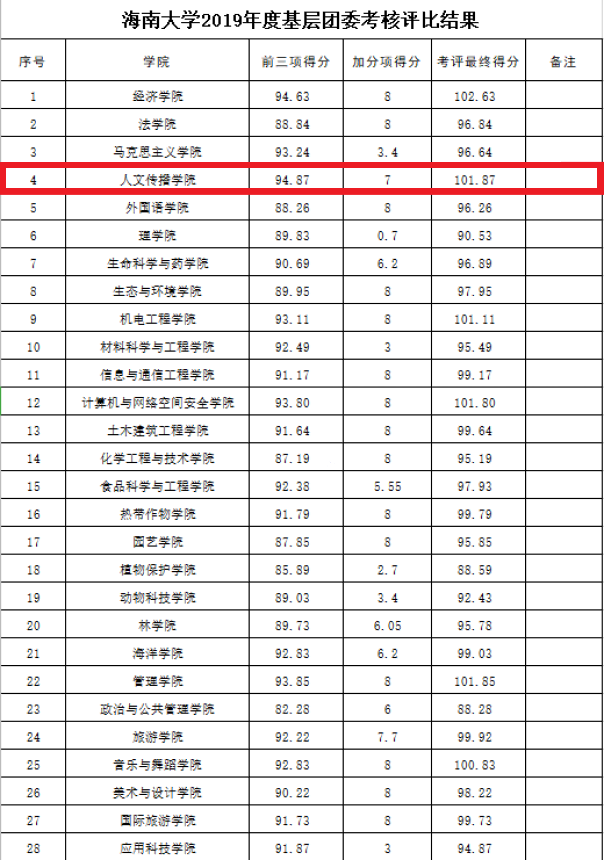 2019年度基层团委考核评比结果