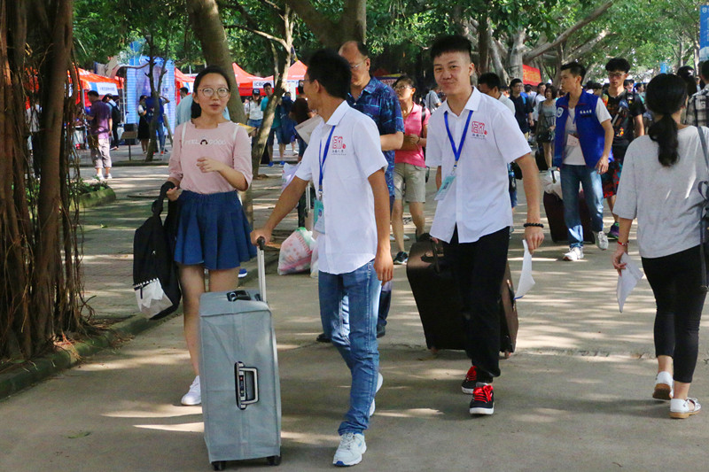 团学干部为同学们搬运行李