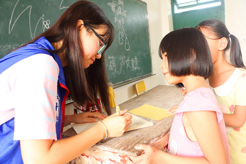 志愿者与孩子们愉快聊天