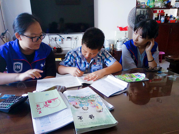志愿者辅导孩子们写作业