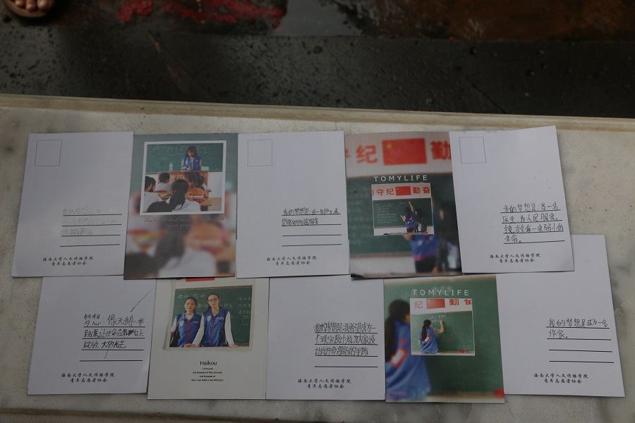 志愿者展示孩子们送给自己的礼物