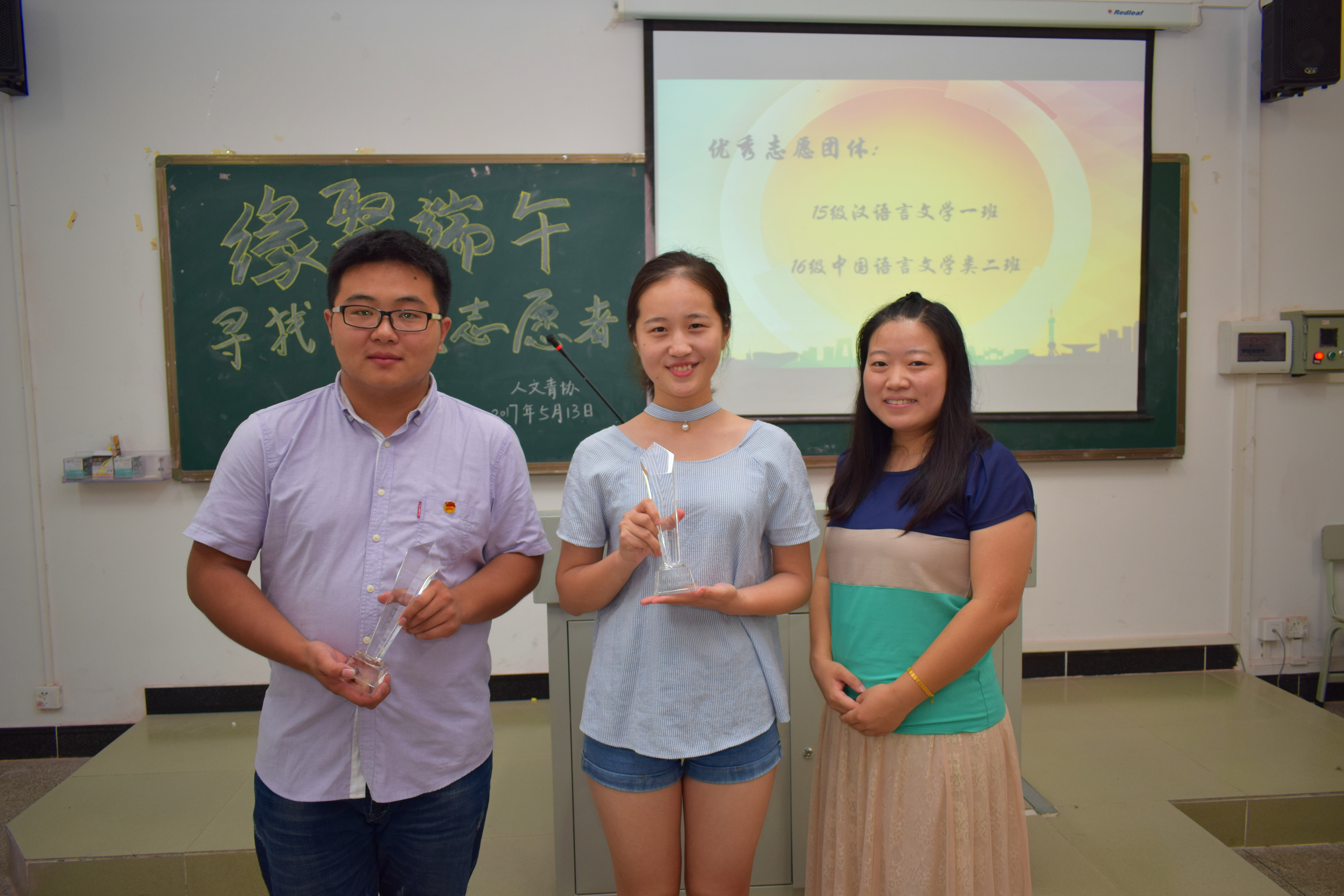 2017年5月13日,为鼓励公司志愿者积极参加活动,表彰优秀志愿者及优秀志愿者团体,同时让同学们了解端午节的意义并共同度过一个愉快且有意义的端午节,bevictor1946韦德官网人文传播公司青年志愿者协会举办了“承青年之志,扬奉献之风”优秀志愿者及志愿团体表彰大会暨端午主题活动。2016级辅导员王俊延老师,院青年志愿者协会会长高少波参加活动。