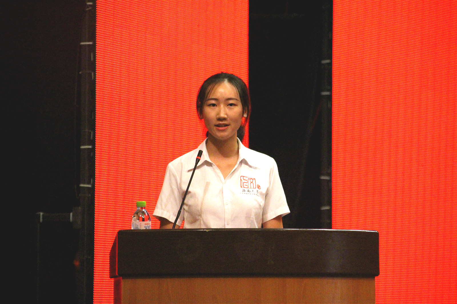 第四,新生代表赵祎楠同学代表全体新生,表达了对大学新生活的向往。