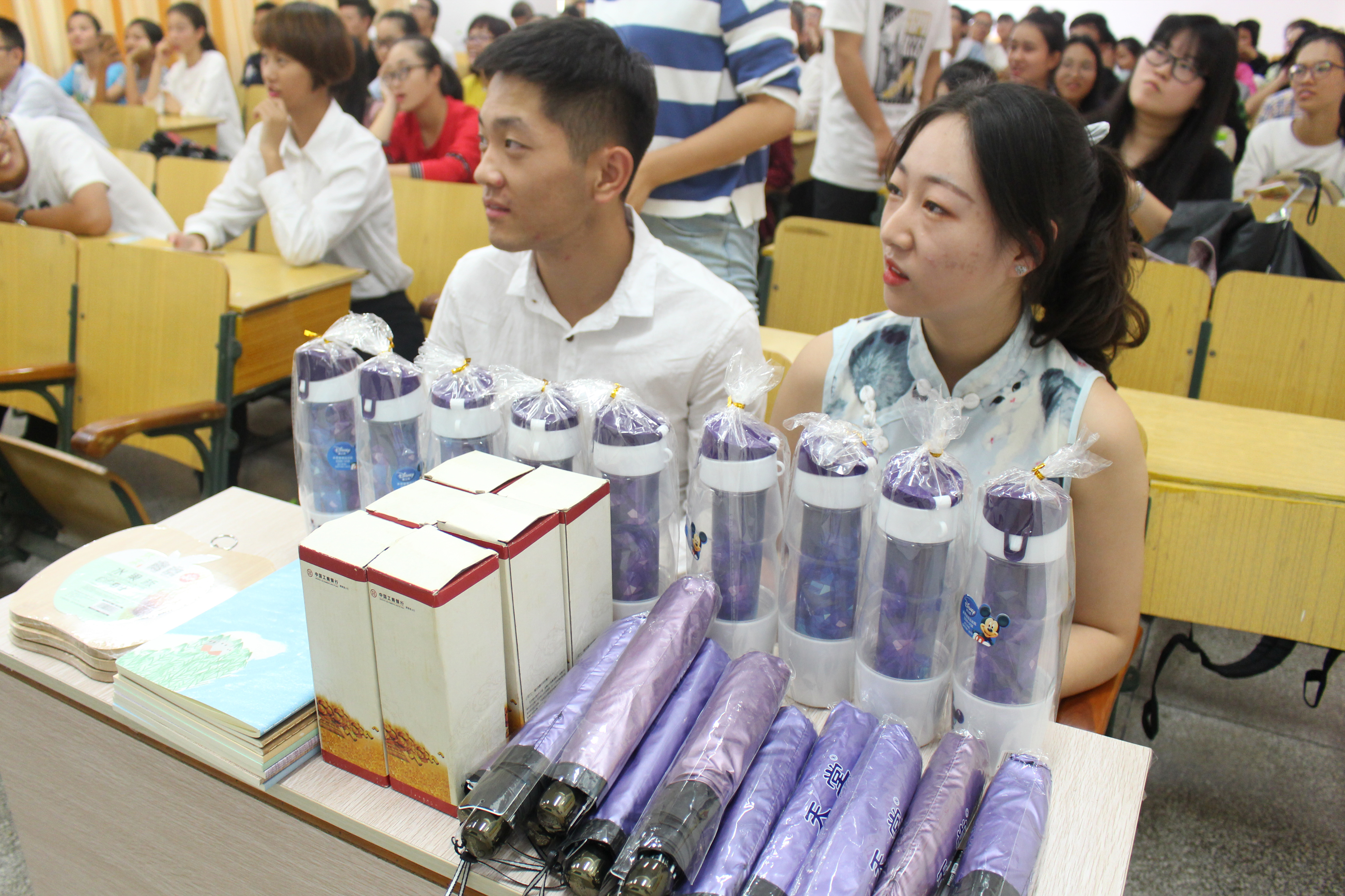 第三、会议有奖问答环节,主持人围绕党的十九大精神提出一系列问题,在场的同学举手回答,回答正确的同学可获得纪念的小礼品,与会人员积极热情,会议气氛热烈。