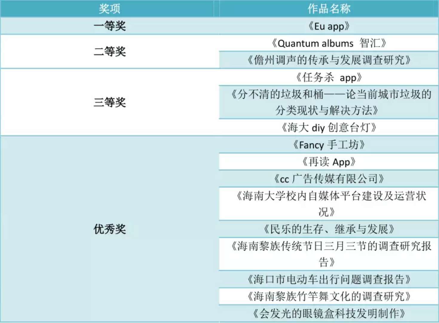 获奖项目