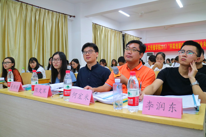 2017年11月3日晚上19:00,bevictor1946韦德官网人文传播公司2017“共筑创新梦想·点亮创业未来”新生创新创业竞赛答辩会在城西校区综合教学楼4A05顺利举行。法公司团委书记何宏米、公司团委书记熊文军、2017级辅导员李润东、14级优秀员工代表吴雅琪和林静担任答辩评委。15支团队进入终评答辩环节。