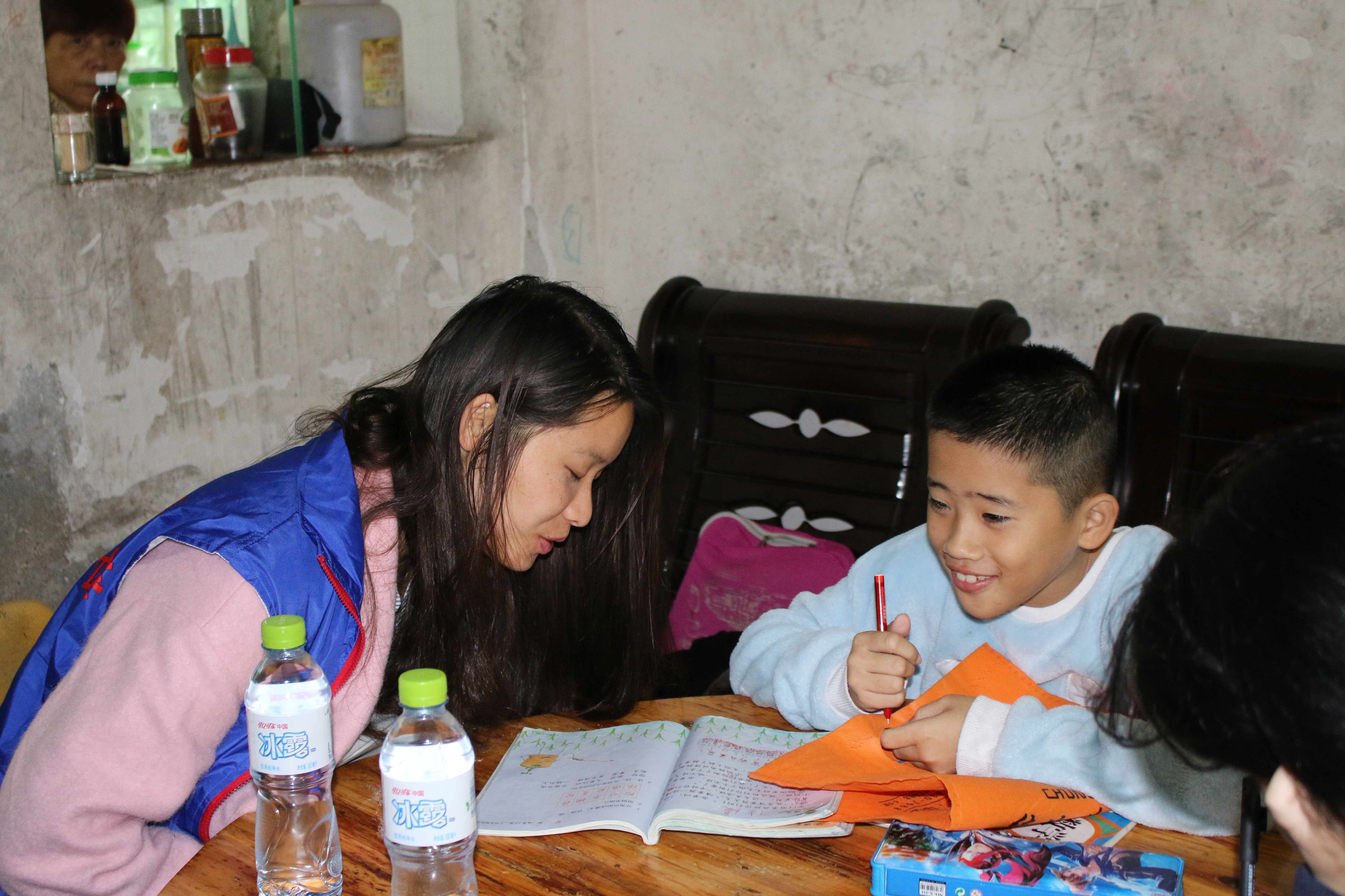 志愿者耐心的辅导孩子