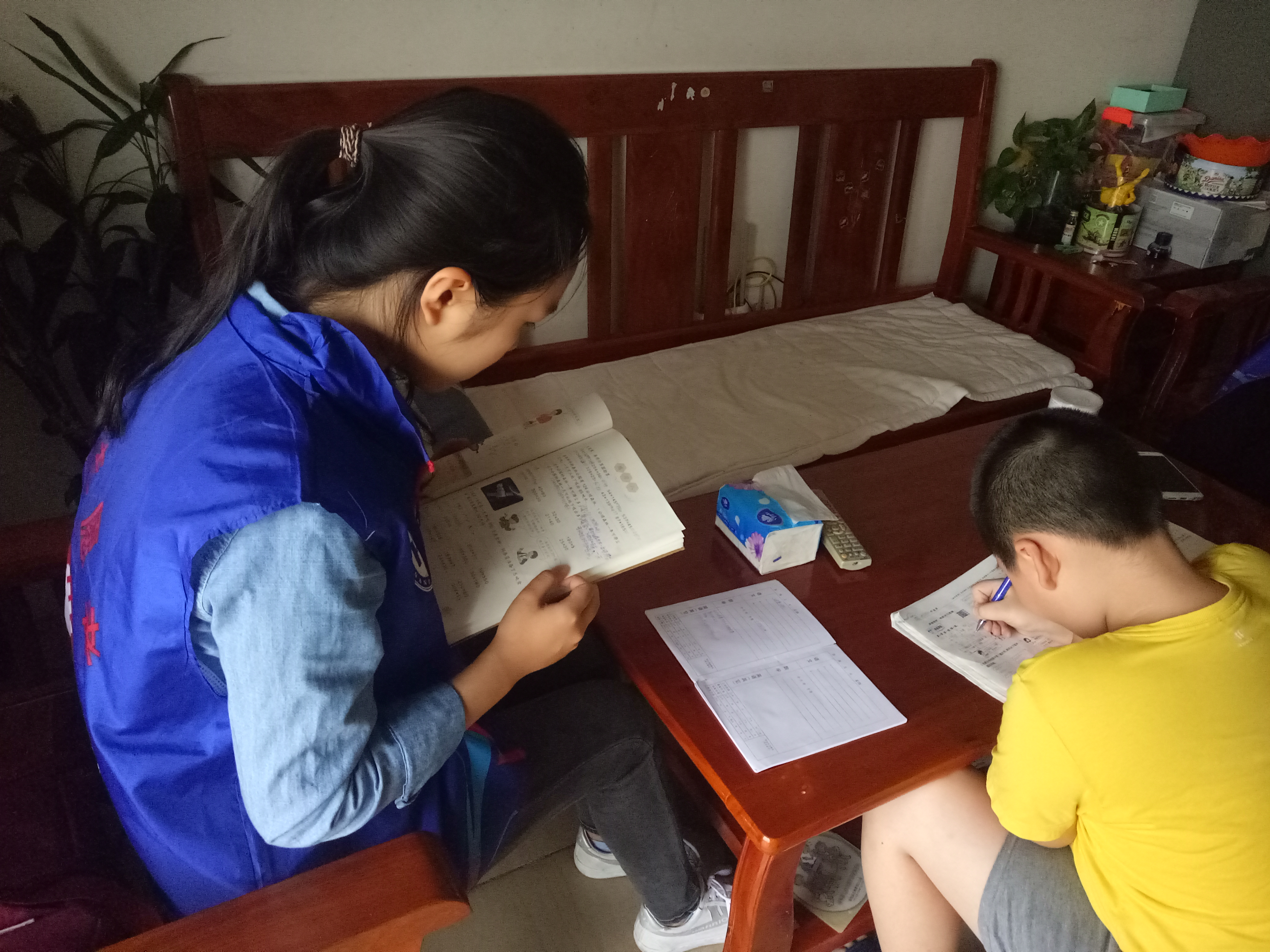 志愿者为孩子讲解题目