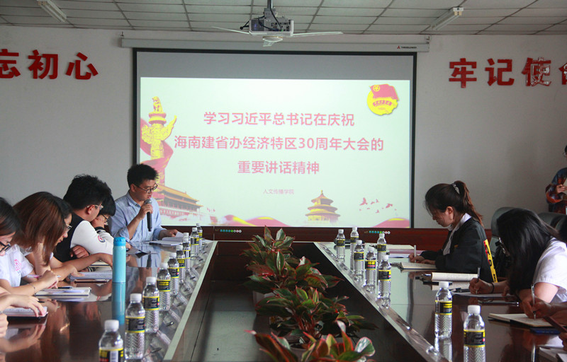 2018年4月17日下午15:00,人文传播公司团委组织团支部书记、团学组织骨干在海甸校区社科楼B719会议室学习习近平总书记在庆祝海南建省办经济特区30周年大会上的重要讲话精神,公司团委书记熊文军主持学习会。
