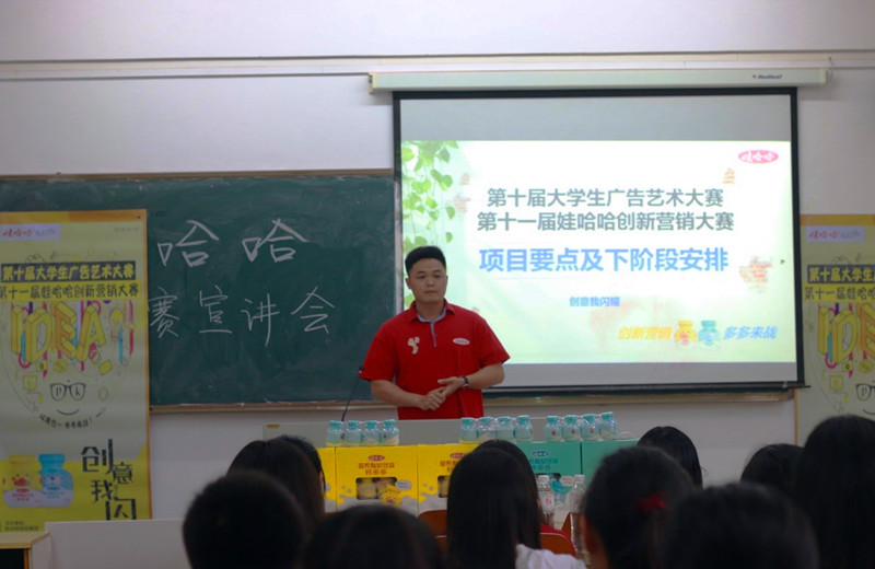 据悉,大赛设立了一二三等奖奖励销售情况较好的团队,表现优秀的团队成员可以获得毕业后进入娃哈哈公司实习的机会。此次宣讲会持续一个多小时,最终圆满结束。通过这次宣讲会,参会的同学体会到创新营销大赛是一个展示个人商业头脑,锻炼各方面能力的好机会,预祝参与营销创新大赛的各位参赛选手们在大赛中取得优异成绩。(广告协会供稿)
