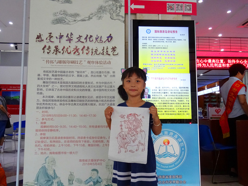 据悉,传拓技艺是中国最古老的“复印术”,是以纸覆在石器、铜器、甲骨、陶器等物件的文字、图案上面,然后用墨“拓”出图案或文字的一种技艺。雕版印刷术作为中国古代“四大发明”之一,曾对世界文明进程和人类文化发展产生过重大影响,体现了古老中国历史和文化的厚重,是中国传统文化的结晶。而海南书香节则是海南省委、省政府重点打造的文化惠民工程和全民阅读活动品牌,是书香海南工程的重要内容。本次观摩、体验活动重在让读者增长见识、感受中华文化魅力,身临其境地体验传拓及雕板印刷技艺的独特魅力和古朴的中华优秀传统文化,体会中华古典文化的博大精深。