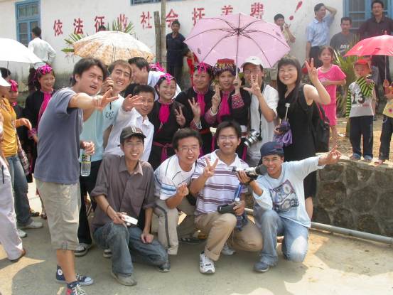 与苗族同胞合影