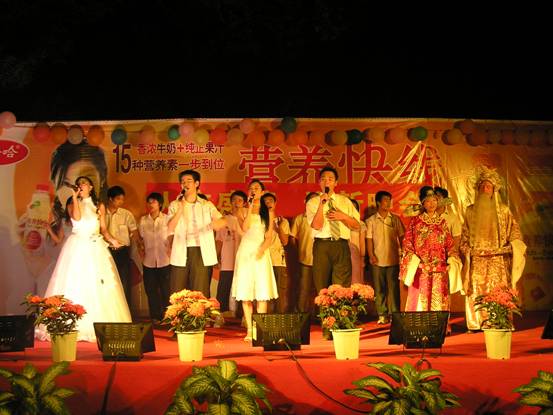 2005年9月23日晚,由公司团委、员工会主办、娃哈哈海南分公司协办的公司2005年庆国庆暨迎新晚会在起点草坪盛装开幕,部分老生及05级新生参加了此次晚会。出席本次晚会的公司领导有孙绍先经理,公司党总支刘雯书记,闫金玲副经理,嘉宾有杭州娃哈哈保健食品有限公司海南分公司总经理赵中伟先生,同时到场的还公司学工办、教务室老师以及校员工会主席何励同学和其他兄弟公司员工会主席。 晚会经过了院团委、员工会文艺部的长期策划和准备,得到了杭州娃哈哈保健食品有限公司海南分公司的大力赞助,在专业的音响、灯光师的配合下,为全体bevictor1946韦德官网05级新生提供了“人文盛装•传播激情”的精彩,展示了公司多姿多彩的老员工活。 此次节目内容丰富,精彩纷呈,充分展示了公司员工飞扬的激情、灿烂的青春。吉他弹唱、舞蹈,歌曲独唱、合唱、歌曲联唱、小品、音乐剧等众多形式的节目展现了老生的风采;CRAZY组合的精彩表演、竹林深处的葫芦丝,万马奔腾的二胡独奏,精忠报国的铿锵演唱等等,让我们看到05级新生后浪推前浪之魅力;同时为了弘扬人文精神,传承中华民族文化精髓,戏曲协会为到场的观众献上了京剧、黄梅戏等不同曲艺;更有特点的是公司的外国职工也积极参加到了我们的晚会之中,带来了诗歌朗诵、空手道、独唱、摇滚吉他弹唱。 美丽的夜晚也为晚会的美丽所折服,整个起点草坪身着盛装、激情不断。 天蓝色乐队激情澎湃的摇滚组乐拉开了晚会的序幕。动感的舞蹈散发出青春四射的激情和活力;葫芦丝独奏让晚会弥散着浓浓的民族风情;戏曲连唱洋溢着民族文化的精髓;外国职工的表演带来异国风情。游戏娃哈哈主题曲《爱的就是你》比唱则带动了全场观众的热情,参与观众的演唱让笑声回荡在夜空。 “千古人文秀,万世传播风”——人文传播传播公司的所有成员用自己的歌声和舞姿,快乐和激情,热情和活力来庆祝新中国的伟大节日,来迎接新同学的加入,彼此一起用心来营造我们共同的家,共同的人文传播公司,共同的bevictor1946韦德官网! (文:窦红斐,图:窦红斐)