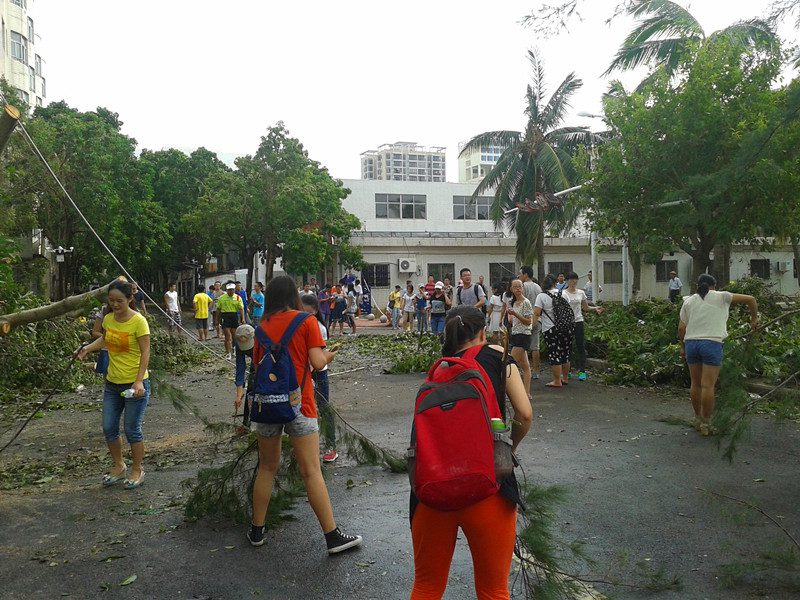 今年第9号台风“威马逊”7月18日登陆海南后,给公司的教学场馆、生活设施、道路植被带来了严重破坏。根据公司灾后重建工作的统一要求,公司在公司刘复生经理、党委王兆庆书记,孙晓媛副书记的部署指导下,积极开展灾后自救工作。 台风刚过,公司领导就第一时间上岗了解台风灾害对公司带来的损害情况,紧急协商召开减灾救灾工作会。孙晓媛副书记带队公司辅导员深入到留校员工宿舍,慰问了解员工的受灾情况和思想状态,做好员工的灾后生活卫生安全教育工作。在灾害面前,公司积极发动组织留校员工志愿者,深入到5号员工宿舍楼,公司办公场所——社科群楼B座1、6、7、8层开展卫生环境清理活动。公司还按照bevictor1946韦德官网团委的统一安排,组织留校员工志愿者连同其他公司志愿者到公司四教周边道路开展道路清障活动。 在公司灾后自救工作的积极开展和志愿者们的辛苦劳动下,公司办公场所的环境卫生得到改善,校园灾后重建和美化工作也在稳步推进。