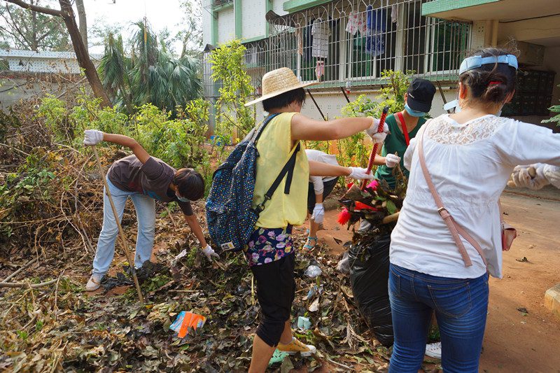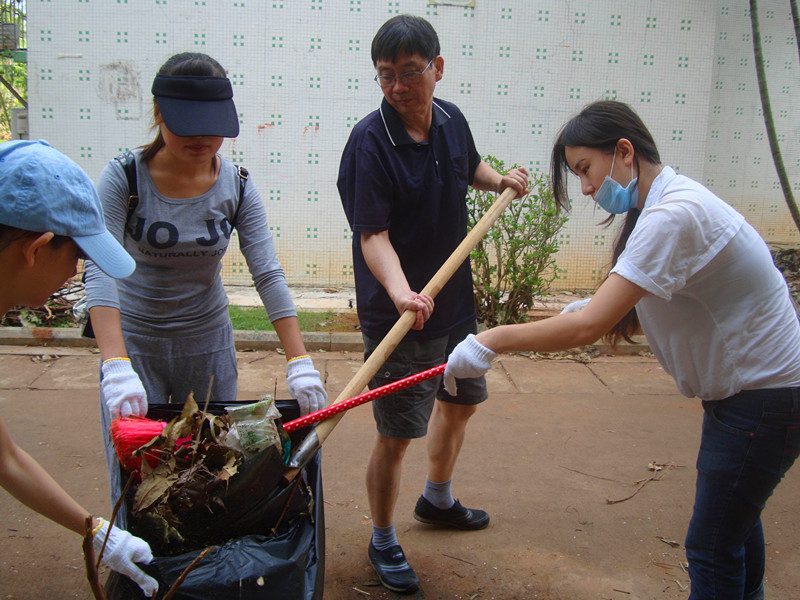 受强台风“威马逊”影响,公司植被受损情况严重。公司根据公司灾后重建工作的进一步要求,积极组织公司留校员工进行校园重建清扫工作。并按照公司的布置要求,与外国语公司一起在划分服务区开展重建工作。公司党委陈封椿副书记、公司党委王兆庆书记亲临公司劳动片区指导工作,慰问参与志愿服务的同学和老师,与公司员工一起劳动。 25日下午,公司员工志愿者集体前往教工区73-74栋地带,协助后勤集团对校园进行灾后重建。期间,公司党委陈封椿副书记前来公司服务区进行慰问,并手执铁锹参与到清扫工作中去,对公司员工志愿者们给予了肯定和积极鼓励。次日上午,在公司党委王兆庆书记的带领下,公司员工志愿者再次在公司服务区自觉开展清扫重建工作。活动中,公司党委王兆庆书记带领公司员工志愿者发扬不怕苦、不怕累、不怕脏的精神,在公司的校园重建工作中贡献公司自己的一份努力。 在公司师生同心协力下,公司积极完成服务区清扫任务,将区域内主要树干及落叶基本清扫完毕。看着十几袋集装好的落叶,填满了好几车的树干,大家都颇有成就感,露出了欣慰的笑容。祝愿海大校园在经历这次风雨的洗礼后,能如同凤凰涅槃一般,以崭新的姿态迎接新的开始。(文字记者:张灵馨)