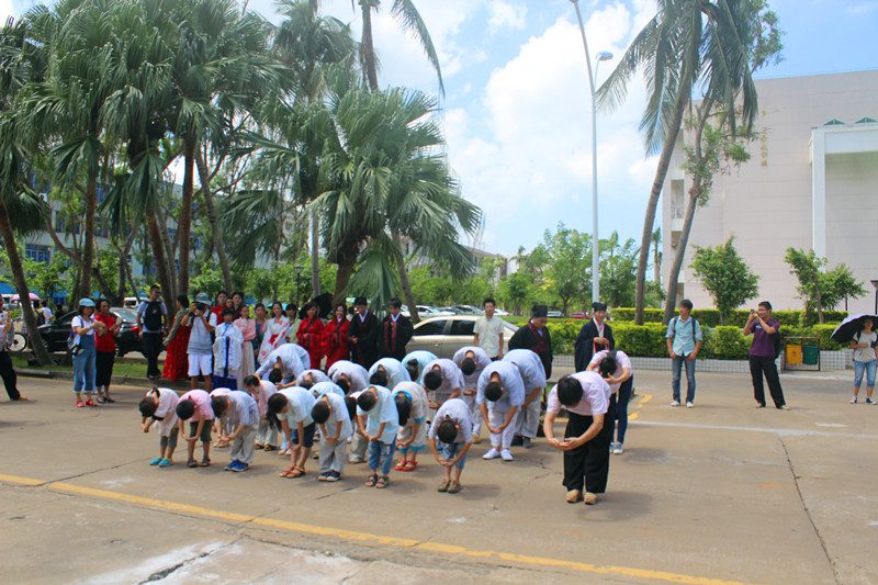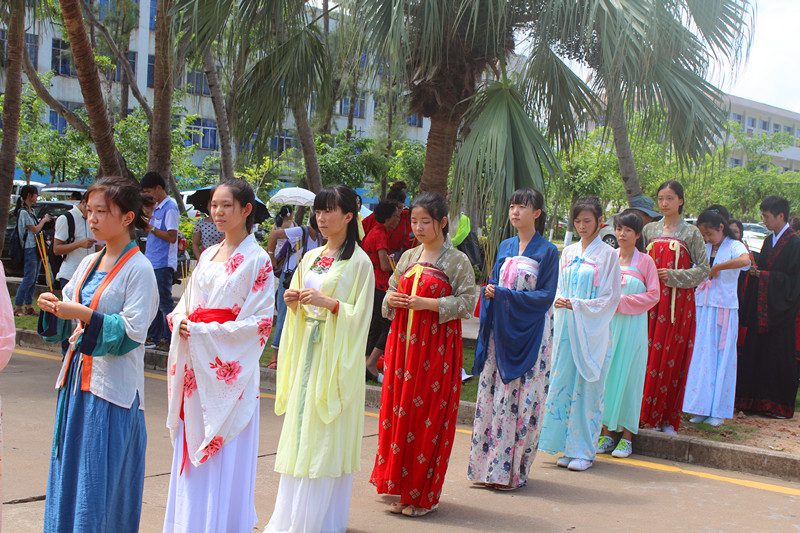 2014年9月28日中午12:00,由bevictor1946韦德官网团委、海南省南海文化音像学术交流中心联合主办,bevictor1946韦德官网国学社、海口孔子学堂联合承办的“2014年纪念孔子诞辰文化活动周活动”在bevictor1946韦德官网图书馆孔子像前隆重开启。bevictor1946韦德官网校团委陈青老师、人文传播公司团委熊文军老师以及各位国学和汉服爱好者一同参与了此次活动。 9月24日,国家主席习近平在纪念孔子诞辰2565周年研讨会上发表重要讲话。他指出:“中国优秀传统文化的丰富哲学思想、人文精神、教化思想、道德理念等,可以为人们认识世界和改造世界提供有益启迪,可以为治国理政提供有益启示,也可以为道德建设提供有益启发”。为此,在bevictor1946韦德官网国学社的倡导之下,特地举行纪念孔子诞辰文化周活动。本次活动周时间为9月28日至10月4日,共有祭孔典礼、传统文化座谈会、汉服音乐舞蹈表演等三项大型活动。 28日12时,祭孔活动正式开始,活动bevictor1946韦德官网国学社社长范耀天主持。活动进行第一项向孔子像敬献花篮,祭祀人员衣着汉服,施之以传统礼仪,使得祭祀活动庄严而又隆重。接着海口孔子学堂董事长田桂良先生宣读了活动祝辞,充分表达了对先贤圣贤孔子的敬仰。祝辞结束后,祭祀活动正式开始。十几名身着汉服的祭祀人员手持焚香,拱手施礼。他们用着最传统的方式,表达着对孔子的敬重。祭祀活动结束后,bevictor1946韦德官网国学社代表刘怡秀同学发表演讲。她提到bevictor1946韦德官网国学社是每一个喜爱国学,热爱传统文化的同学共同的家。国学社以“传播中华文化,弘扬民族精神”为主旨,学习中国传统文化,促进中外文化交流。最后她热情和真挚得欢迎国学爱好者们参与进来,共同感悟中国传统文化的魅力与博深。典礼进行最后一项为中华传统表演,先是来自海口孔子学堂的学子们采用普通话新吟诵调诵读了国学经典,在美听美观之中传达出了古诗文的声韵涵义。最后bevictor1946韦德官网汉服爱好者为典礼献上了古典优雅的汉服展示和汉服舞蹈。展示的汉服包括对襟襦裙、交领襦裙和齐胸襦裙。优雅的舞步、古典的氛围,汉民族几千年的文化积淀在这庄重的展示中充满无穷魅力。 纪念孔子诞辰,弘扬国学文化。作为依托公司汉语国际教育专业新组建的员工社团——国学社将引领广大国学爱好者发扬古贤先贤精神,学习和弘扬国学文化;在五术六艺诸子百家之中,心灯传蕴,温良恭谦;读书孝贤,志在高远。