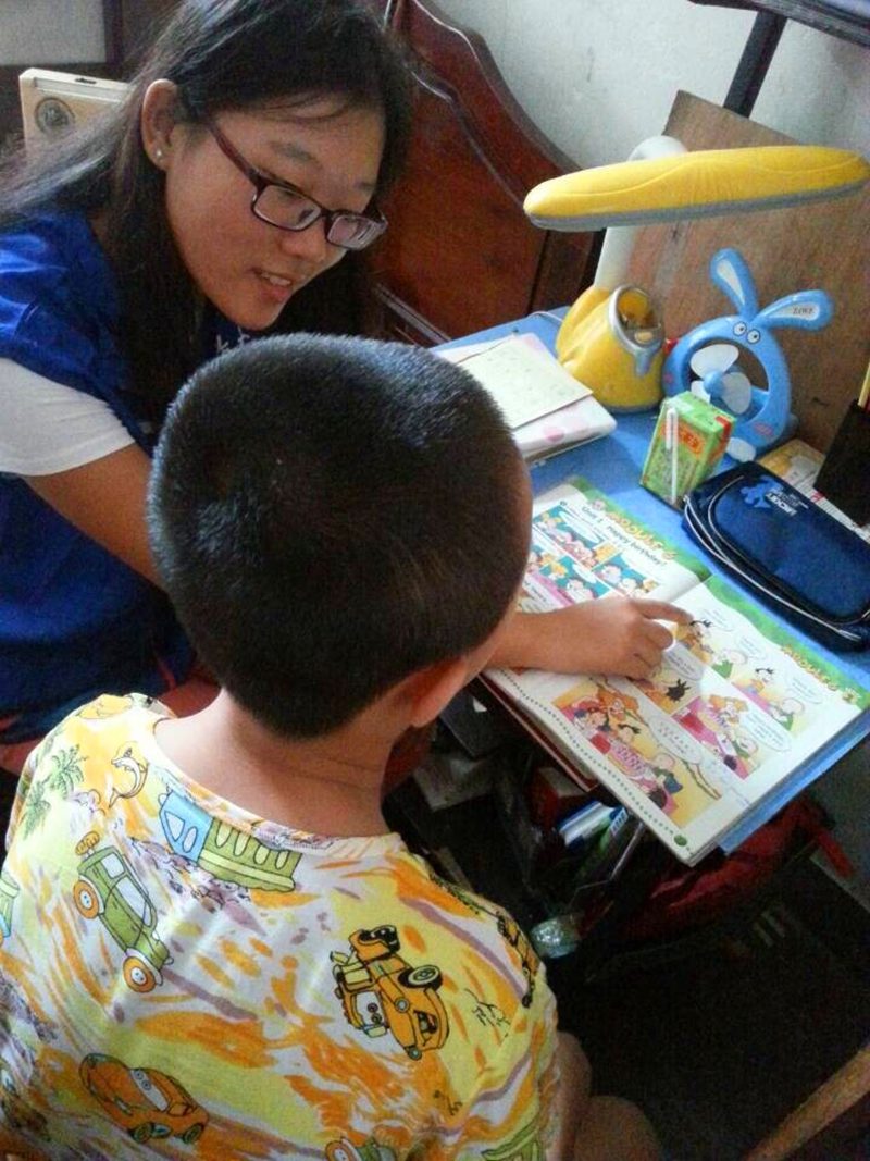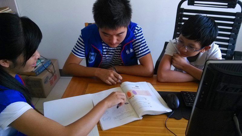 志愿者指导孩子学习