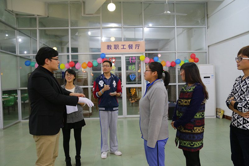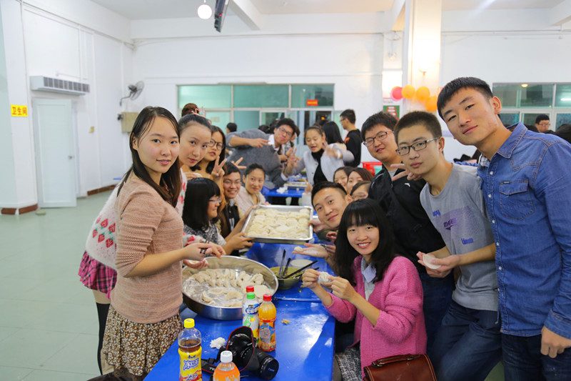 2014年12月21日晚7:30,人文传播公司团委员工会全体成员在城西校区食堂二楼举行了冬至饺子节活动。活动旨在让团学成员彼此加深了解,加深感情,在寒冷的冬至为团学成员送上温暖。学工办的熊文军老师、王森森老师指导并参加了此次活动,老师与团学成员齐聚一堂,共迎冬至。 古来冬至寒夜长,在这样的冷日子里,吃一碗热腾腾的水饺真是让人心生暖意的事情,为了让活动顺利进行,团委办公室的部长带领着干事早早的就到了食堂布置场地,他们购买食材、剁陷、擀皮,所有工作一应齐备。晚上七点半,团学全体成员准备就绪,各部门通过抽签选出了新的包饺子小组一同参加活动。场间的活动共有包饺子大赛、方向大乱站、萝卜蹲、爱你在口口难开等游戏互动。包饺子大赛中,限时5分钟之内,包出最多、最完美的饺子的队伍获胜,为了保证公平,在记分员记下各队饺子数后,各队再继续包出够队员吃饱数量的饺子;方向大乱站活动中,游戏分为指令者和参与者,指令者发出指令,参与者以最快速度看向其他方向,则成功,反之,则失败;在之后的萝卜蹲活动和爱你在口、口难开活动中,大家积极热情的参与到活动中,现场不时传出阵阵欢笑声。活动中,同学们一边玩游戏,一边等待饺子开锅。欢乐中时间过的飞快,一眨眼的功夫饺子已经摆到了饭桌上,同学们迫不及待的吃了起来,在一片欢声笑语中,感受浓浓的节日氛围。 饺香冬至日,情暖团学心。此次饺子节活动不仅让团学成员感受到了团学大家庭的温暖,也促进了团学全体成员的情感交流,更让团学成员感受到了我国传统民俗节日冬至的浓浓节日气氛。本次活动由公司团委办公室组织策划承办。 人文传播公司 新闻部 杜志东