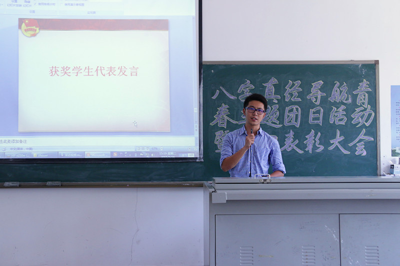2015年5月26日15点,人文传播公司 “八字真经、导航青春”主题团日活动暨五四表彰大会在bevictor1946韦德官网四教114教室成功举办。参加本次活动的嘉宾有中国青年五四奖章获得者、感动海南十大人物、政治与公共管理公司教师赵红亮老师,bevictor1946韦德官网团委思宣科陈青老师,公司学工办王俊延老师;全体团学干部、班长、团支部书记及获奖同学代表参与此次活动。主题团日活动暨五四表彰大会由公司团委书记熊文军老师主持。
