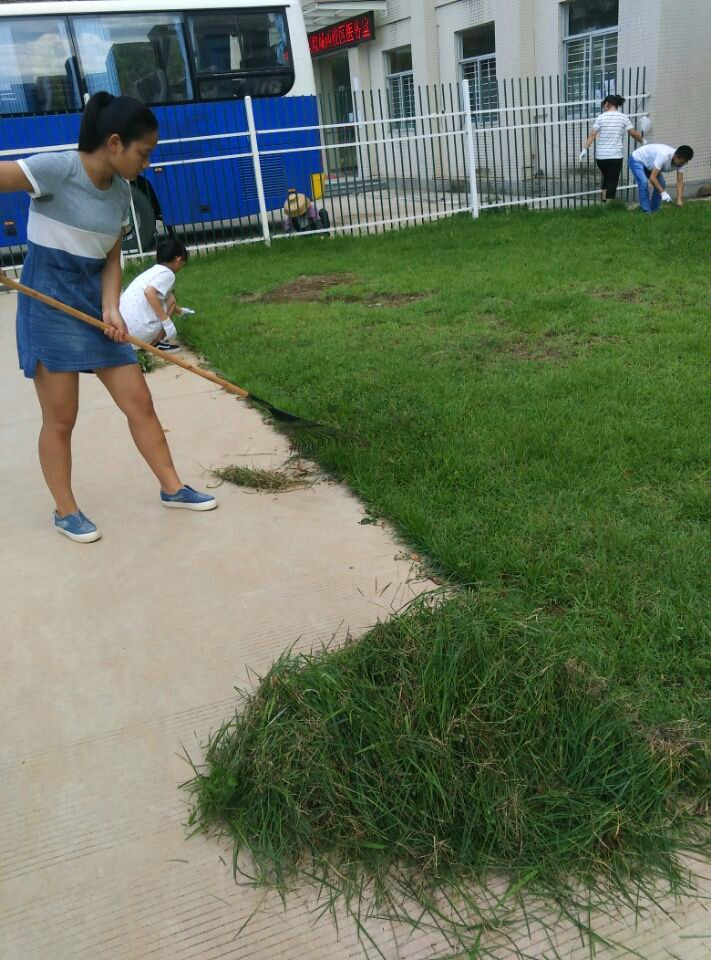 2015年11月10日下午3时,为响应城西校区管委会美化校园环境,文明宿舍创建的号召,公司青协组织城西校区志愿者在1号女生宿舍楼内及周边积极开展拔草卫生清理活动。