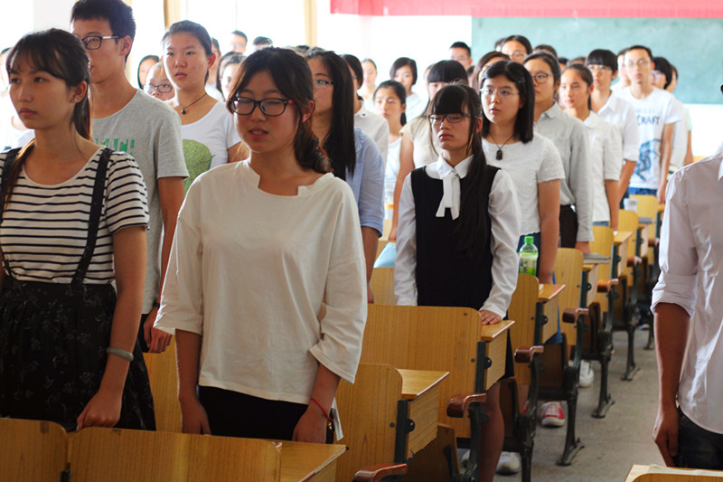 开班典礼,奏唱国歌。