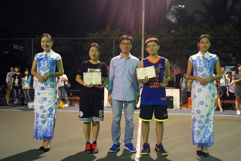 随后,在一段充满活力的中场舞后,男子组比赛正式开始13级广告对阵15级广告,这是一场速度与力量的比拼。15级广告系的篮球队员们一开场便占得上风,开场的连进数球拉动了场外拉拉队员的阵阵欢呼,之后他们凭借一个多月以来积淀的比赛经验所培养出的队员默契合作和稳定发挥,在前三节比赛中分别以10:8、26:14、34:24的优势胜过作为学长的13级广告篮球队,最终以37:31的比分夺得了本场“人文杯”篮球赛男子组的冠军。与此同时,荣获“最有价值的球员”的荣誉称号的球员分别为12级中文系的陈习雯同学和来自15级广告系的占忠文同学。随着中场哨的吹响,此次“人文杯”篮球赛圆满落幕。