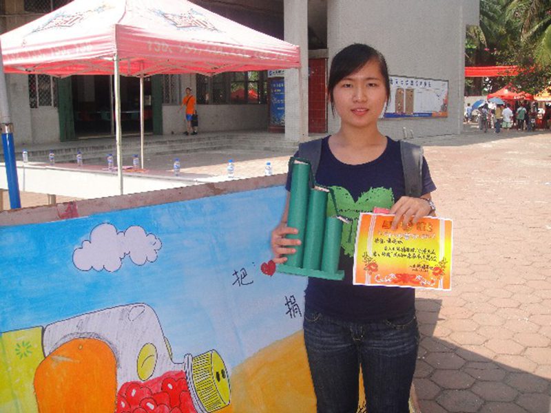本次爱心活动的义卖物品都是同学们用环保实用的材料手工制成的,这些物品所卖得的钱将捐赠给海口市福利院。经过爱心投票,义卖物品“可怜巴巴笔筒”和“屋檐下的微笑”分别获得最具创意奖和最具环保价值奖。活动现场,还有很多同学义卖自己的杂志和书籍,大家干得热火朝天,义买的同学也纷纷献出自己的一片爱心。
