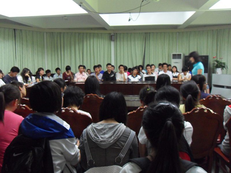 接下来,2009级同学陆续进入会场,会议室内座无虚席。同学们用简洁而真挚的言语表达内心的爱,用身边的故事诉说人间的温情,用精彩的表演传递奉献的快乐。整个面试过程井然有序,处处洋溢着同学们的热情,会场充满了欢乐的气氛。