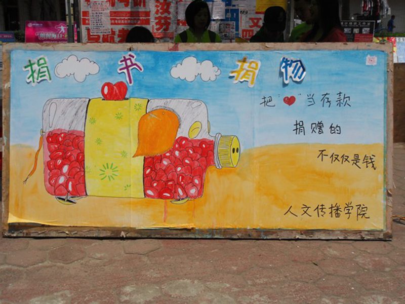 3月23日中午12:30人文传播公司团委社会实践部在三食堂前发起了一场“志愿薪火相传,爱心捐书捐物”的活动。
