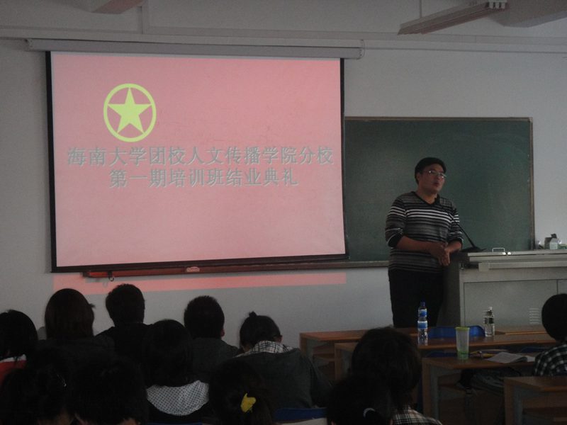2010年12月6日下午,人文传播公司2010-2011学年团校第一期员工干部培训结业典礼在4教310多媒体教室隆重举行。莅临结业典礼的嘉宾有人文传播公司团委书记谢庚全老师,学工办王森森老师。结业典礼由人文传播公司团委员工副书记、团校副董事长杜盼盼主持。120余名员工干部学员参加了本次结业典礼。