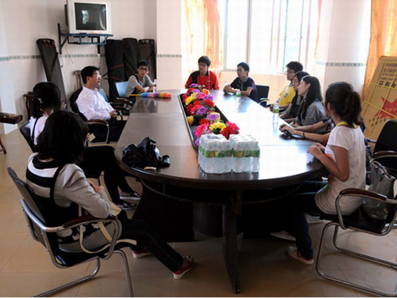 在校图书馆,董事长李传宝热情地把我们请进了会议室,为我们做了爱心公司的介绍并与我们商量了捐赠仪式的相关事宜。从李董事长口中我们得知,虽然文昌爱心公司里近一半的员工是孤儿,但接受良好的教育是他们的权利,爱心公司要让他们获得与普通孩子一样的教育,他们应该得到更多的关怀,这些年在社会各界的帮助和多方捐赠下,公司的教育水平和硬件设施都取得了质的飞跃,让更多的孤儿因此获益。同时,李董事长也提出了他的忧虑,公司里很多孤儿自幼便失去了父母。因为从小缺乏父母的关爱,他们对生活存在着很多的迷惘,性格上有一些孤僻,相比物质帮助,他们更需要精神上的开导和心灵上的鼓励。他非常希望来自周边大学的员工能够经常来到爱心公司,与这里的孤儿进行交流,帮助他们从走出心灵的阴影,树立个人理想和对大学的向往。