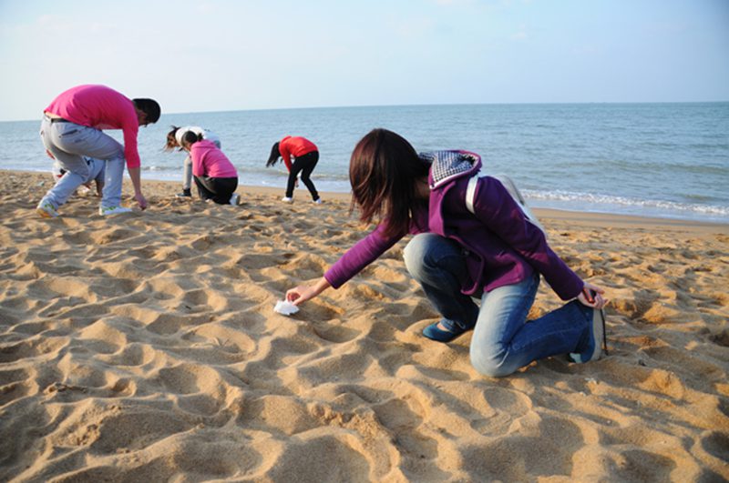 清理海滩垃圾 彰显文明文采