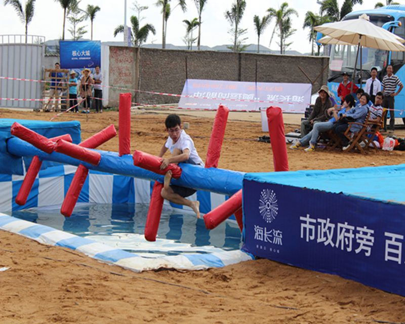 在活动现场,同学们积极参加了本次活动。现场气氛热烈,观众们也为上场挑战的选手们加油打气。赛道共设了5关,选手们依次对这些关卡进行挑战。虽然落水的不在少数,但也挡不住后面参赛选手的热情,本次素质拓展活动也顺利开展。