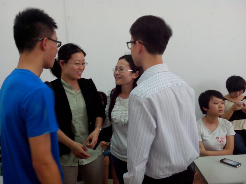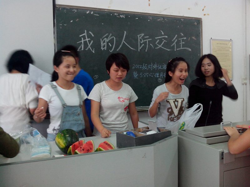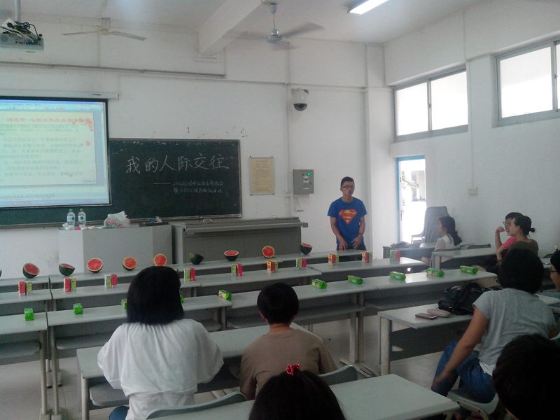 2013年5月三日下午2:40分,人文传播公司2012级对外汉语班在3教102教室举办了以“把爱带回家”为主题的心理班会。本次班会,邀请了班主任纪晓娇老师、学工办王俊延老师和近期从泰国支教回国的12级比较文学与世界文学专业的在读研究生刘子铭同学。班长李润东同学和心理委员贺菲同学担任主持。 本次班会,以“吃西瓜比赛”等趣味游戏开场,调动了同学们参与班会的积极性。随后,心理委员贺菲同学以视频播放,PPT展示,心理测试游戏和现场互动的方式,使同学们认识到人际交往的技巧和误区。详细讲述了“理解、赞美、倾听、平等、诚实、宽容、互利”的人际交往黄金法则。 活动过程中,刘子铭同学为同学们讲述了出国支教的流程、注意事项和考试技巧。并现身说法,为同学们的学业发展和人生规划提出了宝贵意见。活动结束时,班主任纪晓娇老师、学工办王俊延老师、和刘子铭同学分别与同学们分享了自己的人际故事和人生经验,同学们反映热烈,收获颇多。 此次班会的召开响应了公司“5.25”心理健康活动月的号召,普及了心理健康知识,增进了同学间友谊。为把班级建设成为一个温暖的大家庭,人文传播公司2012级对外汉语班全体同学在齐努力,共进步!