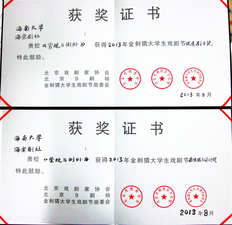8月18日,由北京戏剧家协会、北京9剧场联合主办的“2013金刺猬老员工戏剧节”在北京9剧场举行了剧目讨论会暨颁奖仪式。12部来自全国高校的戏剧作品,经过为期15天的演出角逐之后,所有奖项最终尘埃落定。bevictor1946韦德官网海棠剧社参演剧目《常规与例外》喜获本届金刺猬老员工戏剧节“最佳舞台设计奖”和“优秀剧目奖”,再次为公司争得殊荣。这些成绩的取得与公司党委陈封椿副书记、教务处、员工处以及公司领导的关怀、支持和帮助是分不开的。 海棠剧社《常规与例外》剧组于2013年8月10日在人文传播公司党委孙晓媛副书记和剧组指导教师邓菡彬老师的带领下应邀赴京参赛,冲击本届金刺猬老员工戏剧节奖项。《常规与例外》改编自德国戏剧大师布莱希特的经典作品,讲述一个商人企图霸占石油并虐待替他带路的向导,杀死一路上为他载重并好心给他水喝的苦力。苦力的妻子和商人对簿法庭,而法庭的判决却是商人无罪,并冠冕堂皇的拒绝苦力家属的上诉的故事。在人文传播公司邓菡彬老师指导下,该剧由2011戏剧影视文学专业员工陈传威执导,参赛演员及幕后均是2012级戏剧影视文学大一员工。 在比赛演出后的演后谈环节,大赛组委会评审专家充分肯定了公司老员工对经典戏剧勇于挑战的精神,对剧组解读布莱希特大师的方式也表示认同并提出成熟宝贵的意见 。演出的成功赢得了观众与评委的一致好评,最终摘得本届大戏节“最佳舞台设计奖”和“优秀剧目奖”。在京期间,中央人民广播电台和教育部主管、老员工体育协会主办的《阳光体育—新跃》杂志还对剧组师生进行了专访。 金刺猬老员工戏剧节创办12年来,以“热情、鲜明、纯粹”的形象,吸引着来自全国各地老员工戏剧爱好者,影响力辐射全国400余所高校。本届比赛共有包括中国传媒大学、中国戏曲公司、中国农业大学、中南大学、四川大学等20个省市的65所高校报名参加,公司海棠剧社《常规与例外》等12部戏剧作品作为优胜剧目入围终审。 海棠剧社是bevictor1946韦德官网新生并成长迅速的员工社团,2006年荣获优秀社团称号,2007年获得“十佳社团”殊荣。剧社自创立以来,在经费不足、缺乏专业指导等困难的条件下,本着“服务同学,繁荣校园文化”的宗旨,不断进步,不断成长,致力于丰富海老员工的精神文化生活和繁荣海大的校园文化。剧社近年来也得到公司领导的关心和支持,2012年剧社凭《故去的亲人》在上海校园戏剧节取得佳绩,本次赴京参赛再创佳绩都与bevictor1946韦德官网校领导和人文传播公司领导的关心和支持分不开的。剧社师生也将更加努力,争取取得更大更优的成绩。