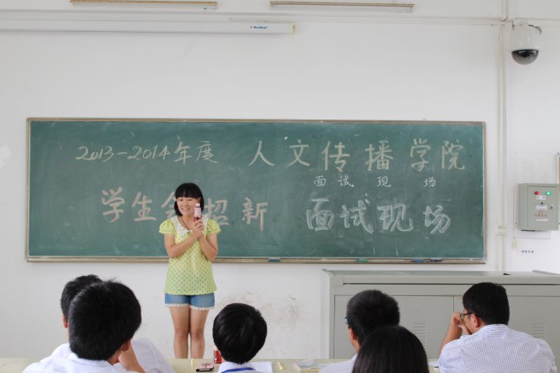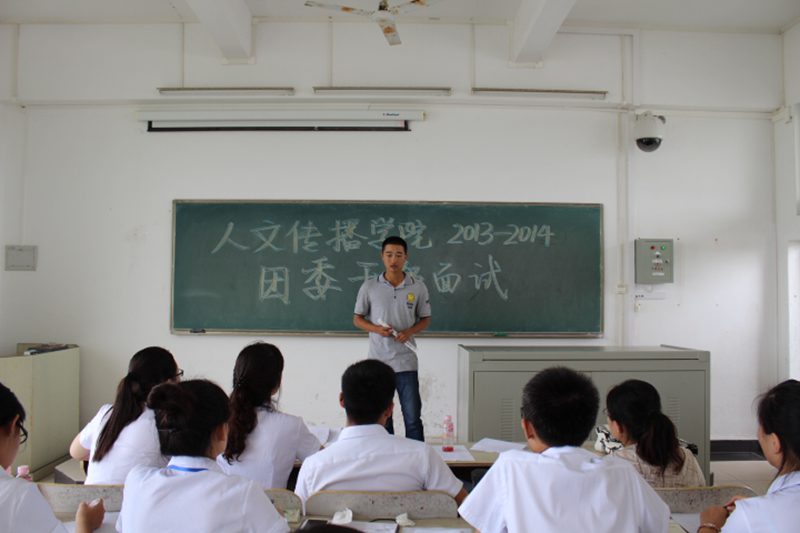 9月17号13:00,人文传播公司团委员工会2013-2014年招新面试拉开帷幕。团委面试于3-501举行,员工会面试于3-503举行。学工办公衍峰老师、熊文军老师、王俊延老师到面试现场进行指导。 本次面试的同学经过了团学各部门部长的精心挑选,整场面试进行的有条不紊。中午12:30,团学各部门部长到面试教室进行准备,主席团成员布置了面试的相关细节工作,并安排了部门之间的面试顺序、面试同学的面试时间等。下午13:00,面试正式开始。在面试进行过程中,同学们积极向老师、部长们展现自己的优点,介绍自身的经历。同时,老师们也针对同学们的个人情况进行了提问,比如让学习了书法的同学现场展现自己的书法功底。各部门的部长也就部门的日常工作以及面试同学的表现进行了提问,面试同学们的表现普遍较好。晚上19:00左右,面试正式结束。 通过此次面试,团学各部门部长对2013级面试同学有了一个较为全面的认识,同时,根据同学们的现场表现,第二轮团学招新面试也已在21号结束,希望报名团学的2013级新生能够在下一轮的面试中更好的展现自己,为团学大家庭注入新的力量。