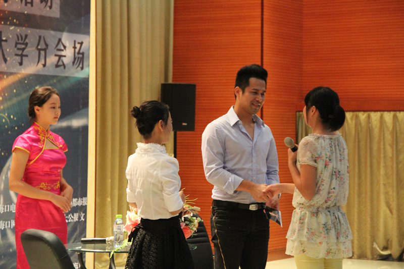 本次活动采取现场访问的形式进行。在主持人热情洋溢的介绍后,吉飞龙来到了会场,现场气氛顿时热烈起来。接着吉飞龙就从广州的跑龙套生活,到现在的成就,对同学们进行了分享。在第五个访问题目结束后,现场开始了用各地方言说台词的互动,大家积极参与,用各地方言讲了吉飞龙在电影中的台词,别具特色的各地方言也引起了现场阵阵掌声。接下来,主持人就电影内容对吉飞龙进行了访问。在被问及剧中的人物与其本身性格是否相像的问题时,他结合自身经历回答了自己在生活中对角色的体验,并举出实例使同学们可以更好地理解。 访问的最后,现场大屏幕上播放了电影宣传片。同时吉飞龙也通过一些图片向大家展示和分享了自己的追梦历程。讲述结束后,公司员工对其奋斗经历、未来规划等进行了现场提问,吉飞龙也对同学们的提问做了详细的回答,并提出了自己的建议。会后,吉飞龙与现场的粉丝和影视协会工作人员合影留念,并跟同学们热情的交流和签名,海南省各大媒体机构会后也对其进行了采访。 本次活动的举办不仅给影视协会提供了沟通和交流的平台,也为公司戏剧影视文学专业的员工提供了学习和借鉴的宝贵经验。
