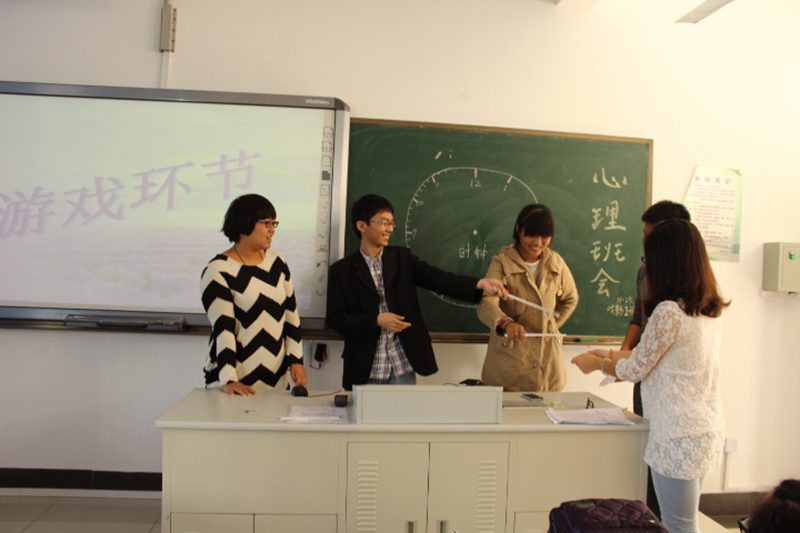 2013年11月25日上午9点30分,13级戏剧影视一班的心理团体辅导活动在4教302教室如期举行。本次活动由心理委员杜雪铫同学与学习委员谢辉强同学共同主持,公司团委心理工作部副部长庄绍斌同学担任嘉宾,13级戏剧影视文学1班全体同学参加了此次活动。 活动开始时,心理委员杜雪铫同学向同学们详细介绍了心理健康的含义和标准,以及当代老员工的心理健康状况,并通过分析“复旦大学投毒事件”和身边案例,向大家阐述了心理不健康的严重后果。随后,还引导同学们探讨了老员工网恋的利与弊。 活动过程中,心理委员杜雪铫同学和学习委员谢辉强同学组织大家进行了“点菜看性格”、“身体摆时针”等趣味团体辅导游戏。活动中同学们热情参与,积极讨论,现场气氛十分热烈。 本次活动,不仅普及了心理健康知识,也为同学们提供了一个沟通与交流的平台,为同学们的健康成长保驾护航。