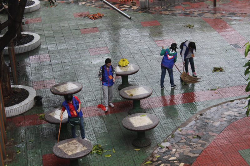 志愿者打扫庭院