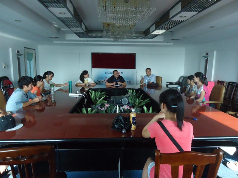 6月3日,在公司学工办公衍峰老师带领下,2013级广告学专业10名员工来到位于龙华路财盛大厦的国际旅游岛商报,受到了林皓副总编、常珊珊主任(多媒体采编部)、唐伟杰副主任(报社办公室)等领导的热情接待。