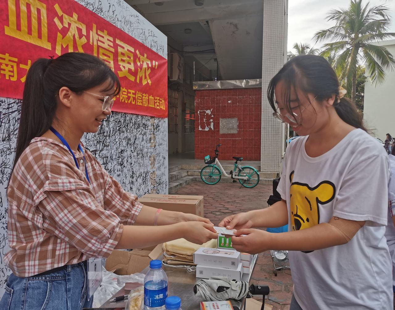 在活动开始前一小时,带队人员和志愿者早早到达活动场地,为献血活动布置场地、摆放物资。活动于下午四时准时开展。由于上课时间不同,献血的同学们错峰而来,现场秩序良好。有许多同学是熟悉的面孔,对献血步骤轻车熟路;也有部分同学是第一次献血,志愿者们向他们介绍献血流程,引导他们正确填表;有个别同学不符合献血标准,他们深感遗憾,表示要好好调整身体,满足献血要求,争取赶上下次的献血活动。每名人文传播公司的献血者还可获得公司准备的红枣枸杞酸奶一箱、小零食一份。献血的同学们收到礼品时倍感惊喜,连连夸赞公司的暖心举动。越来越多的同学加入到献血队伍中来,他们以个人之力倾心支持献血公益事业的发展。