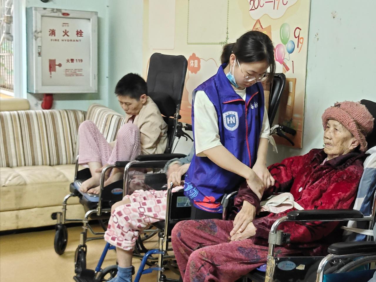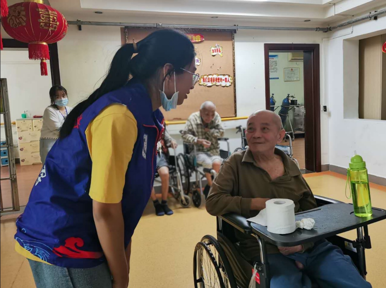 在此次活动中,志愿者们分成三组,分别在爱至家的三个楼层进行敬老爱老活动。活动期间,志愿者们陪老人聊天散步、帮老人按摩、清扫老年护理院以及整理物资。在护工的指导下,志愿者们学习护理技巧,照顾卧床老人。部分海南本地的志愿者用本地方言与老人聊天,回忆起年轻趣事的老人露出了孩童般的笑容;高龄的退休医生高唱国歌,用苍老的嗓音诉说拳拳爱国心。后期大批物资送至老年护理院,志愿者们分工合作,流水线式地清点、输送和整理物资。在整理物资期间,有几位老人的孩子来到护理院看望他们,即使父母与子女距离再远,牵挂彼此的心总是能拉近双方的心理距离。