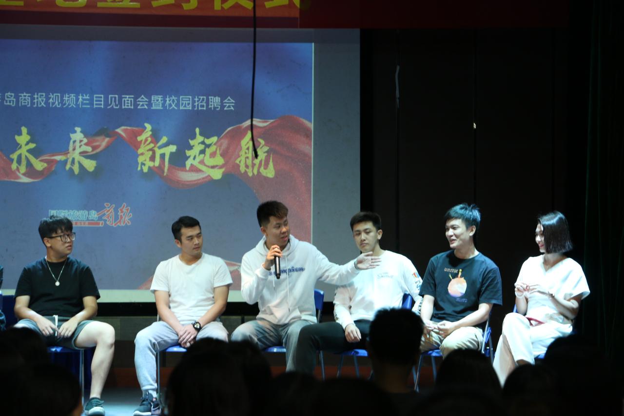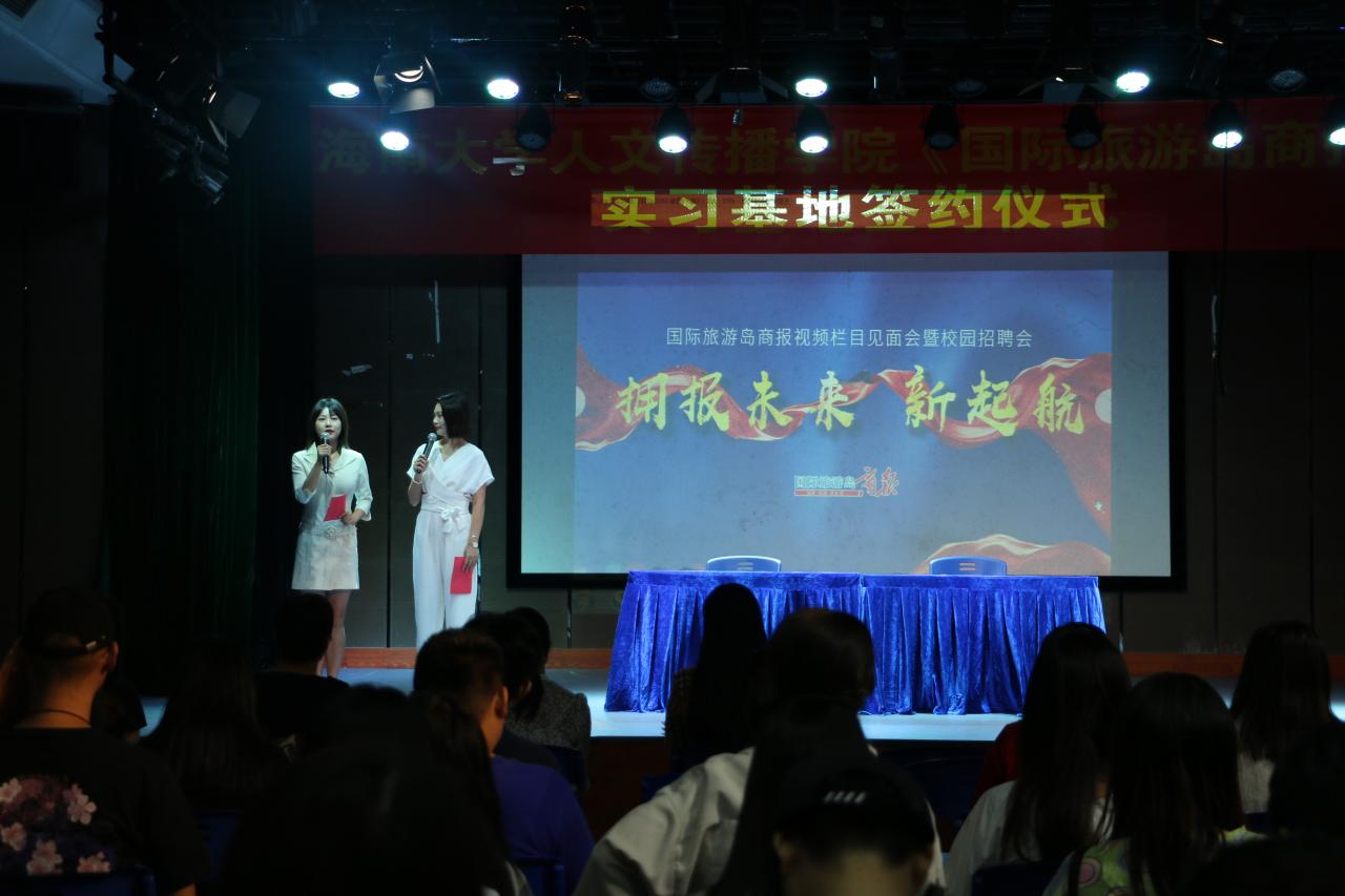 签约结束后,进入宣讲环节,《国际旅游岛商报》工作人员先是简单地介绍了各自负责的工作内容,接着为同学们分享了节目制作的经验和制作过程中的趣事儿,鼓励同学们要相信自己,兴趣发挥到极致就会有收获;到场员工认真聆听、积极回应,现场气氛热烈、互动频繁。宣讲结束后,此次活动也落下了帷幕。
