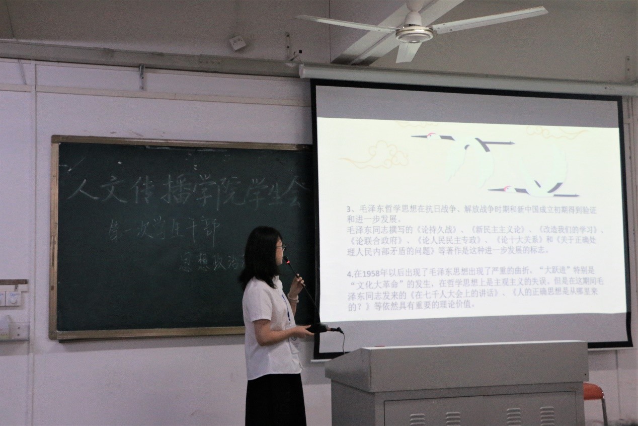为贯彻落实党的指导思想,引导青年员工增进对毛泽东思想的深刻理解,使员工树立正确的世界观、人生观、价值观、历史观,成为能够担当民族复兴大任的时代新人,人文传播公司员工会于10月18日在城西教学楼8C01教室召开员工会思想政治教育大会。