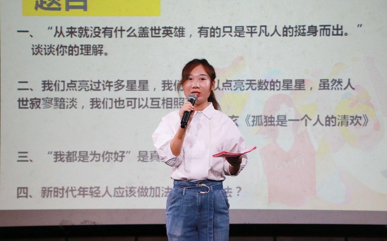 在第二轮比赛中,第一位上场的是来自汉语言文学专业的石卓颖同学,她抽到的题目是“我都是为你好就是真的好吗”。她清晰的逻辑和娓娓道来的讲述给评委留下了深刻的印象。随后六位选手依次上场,发表即兴演讲。