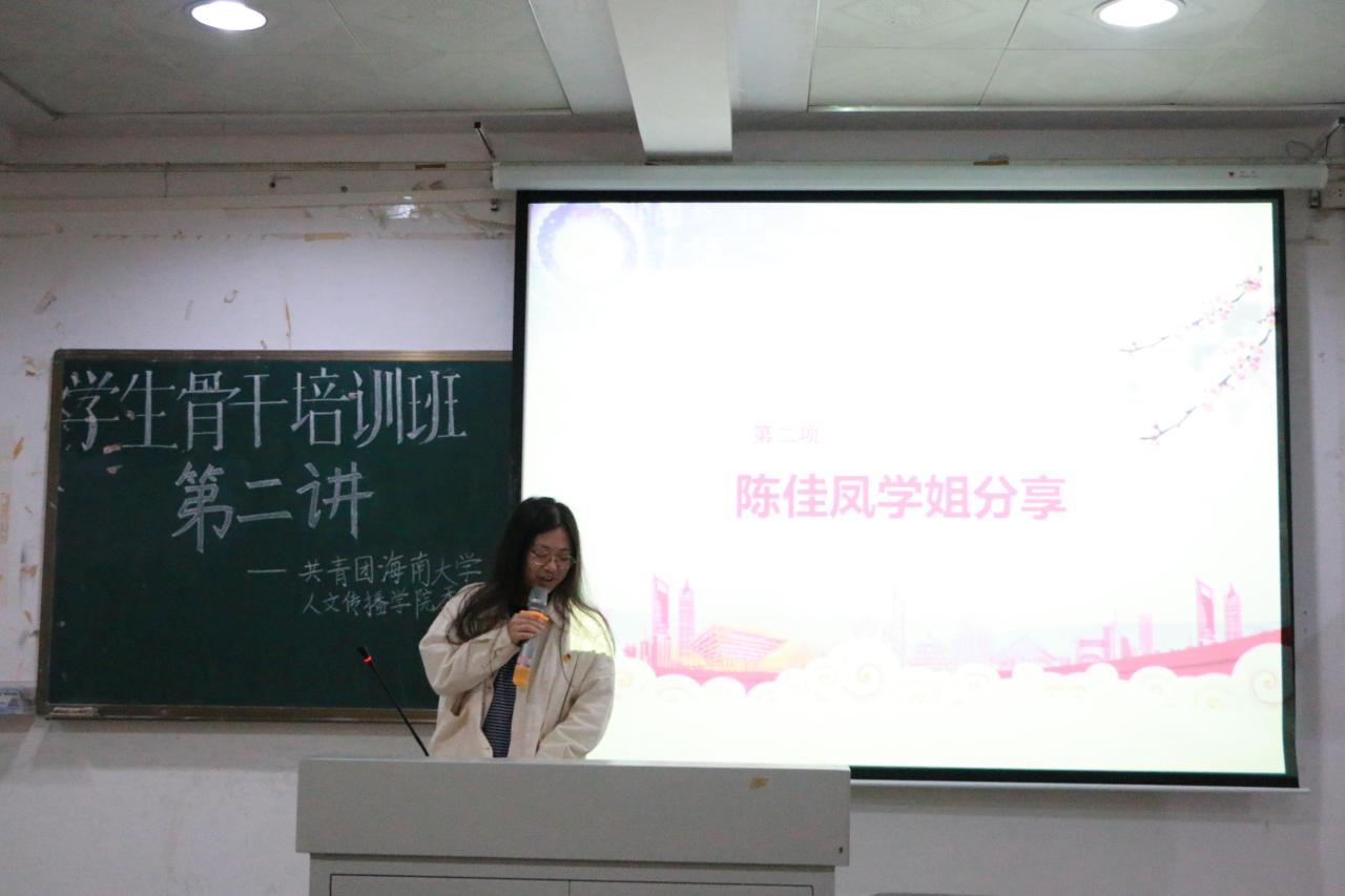 在分享过程中,吴维泽从我的大学、团学干部、设计思维和学会复盘四个方面讲述了身为员工干部应如何做好本职工作,并在平衡学习与工作的同时,丰富多彩地度过老员工活。他指出,作为员工干部,要不忘初心、牢记使命,面对困难要勇于挑战,从过去获得力量。而后,施雅馨结合自己在员工组织中的经历,分享了员工组织工作中可能遇到的问题和解决方法。她期望,同学们的眼光能放长远,并祝愿他们在团学事业和学业上双丰收。最后,陈佳凤通过分享自身的故事告诉同学们要勇于选择、苦中作乐、在理解中进步、在无畏中成长。她告诉同学们,既然选择了,就不要再害怕,既然决定了,就坚定地走下去。