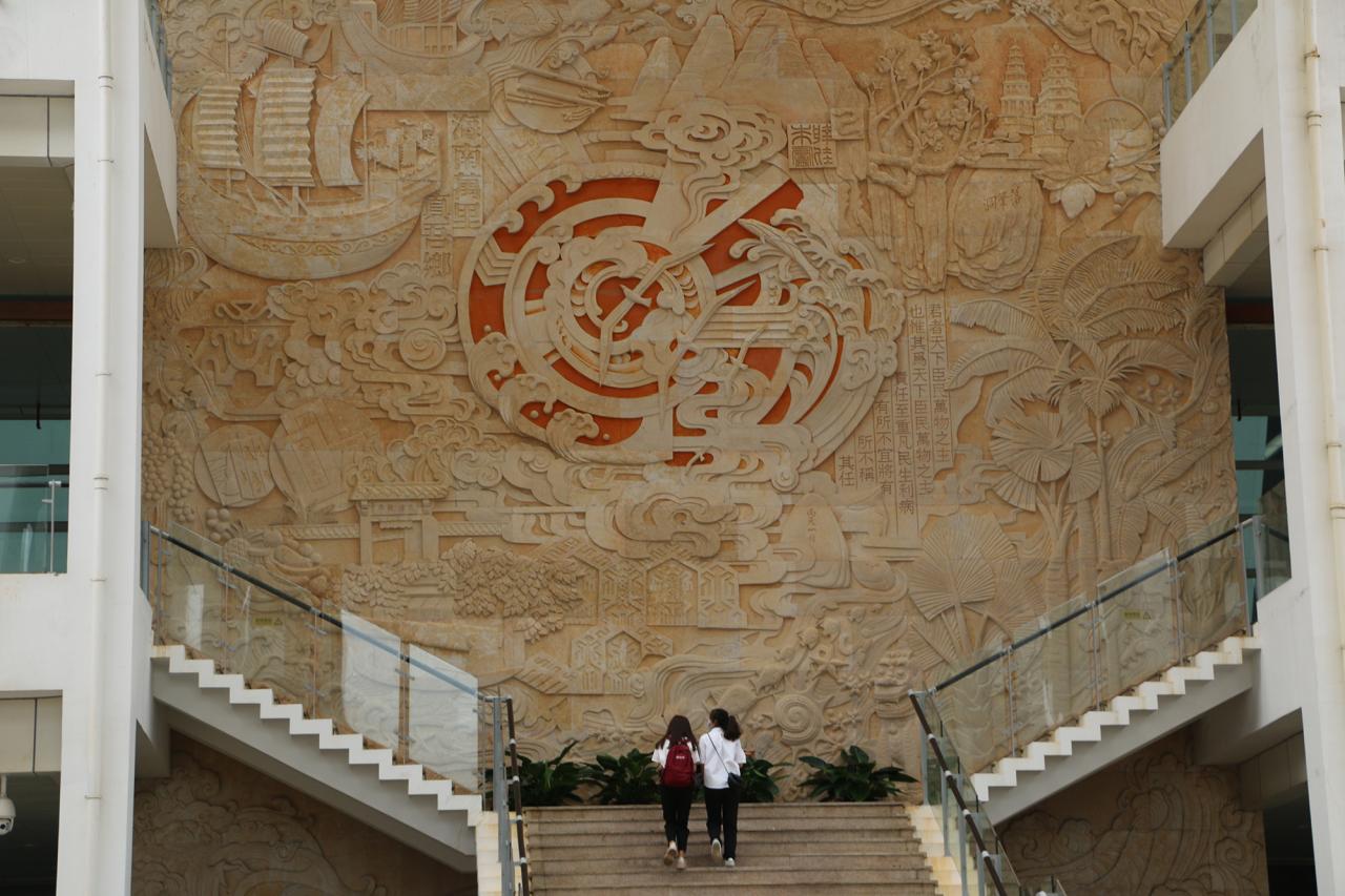 为让新生了解海南发展历史,更好地参与到海南自由贸易港的建设中来,本次素质拓展活动的地点定在海南省博物馆。海南省博物馆位于海南省海口市,开馆于2008年,是海南省内一座综合性博物馆,也是国家一级博物馆。博物馆由一、二期建筑构成。占地面积60余亩,建筑高度25米,建筑面积近43000平方米,地上3层,展厅数量多达20个,最大的展厅面积达1200平方米,最小的展厅面积近230平方米,其馆藏之丰富,让人惊叹。