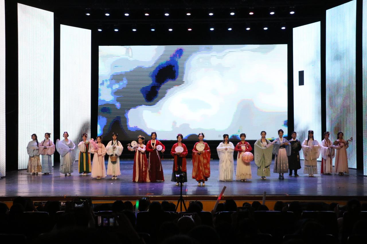 伴随着由钟雅洁、符明超、郑清源、郑祺瀚带来的歌曲《亲爱的旅人啊》,晚会进入尾声,演员们上台谢幕。